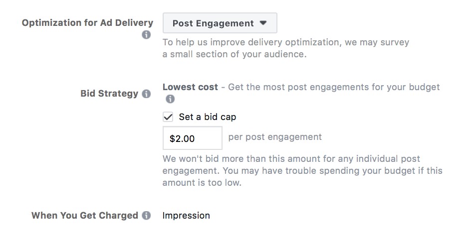 Η στόχευση κοινού είναι πιο περιορισμένη εδώ, όπως και οι επιλογές υποβολής προσφορών και οι επιλογές τοποθέτησης. Δεν μπορείτε να ορίσετε όρια προσφορών ή στρατηγικές προσφορών. Οι αναρτήσεις σας θα εμφανίζονται μόνο στα newsfeeds.