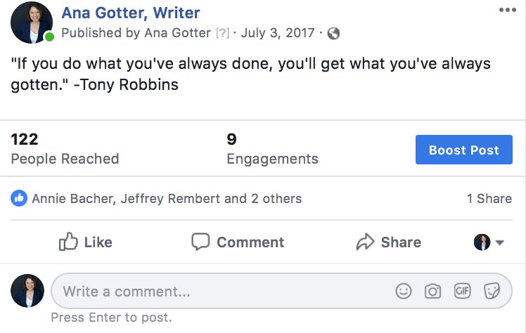 Όταν η οργανική σας ανάρτηση προωθείται μέσω του συστήματος διαφημίσεων, όλες οι κοινωνικές αποδείξεις που έχετε επί του παρόντος έχουν προωθηθεί. Όλα τα μου αρέσει, σχόλια και κοινόχρηστα στοιχεία είναι ορατά και βοηθούν τη διαφήμισή σας να κάνει μια καλή εντύπωση από το ξεκίνημα.
